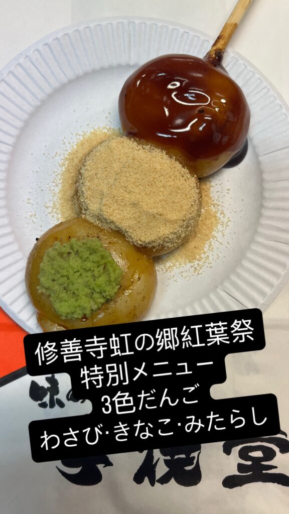 修善寺虹の郷店もみじ祭限定の『もみじだんご』と『せんべい汁』が紹介されました